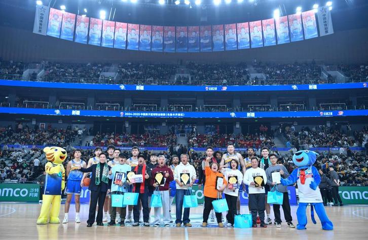 12月22日,新疆队为球迷代表赠送礼物。新华社记者 胡虎虎摄