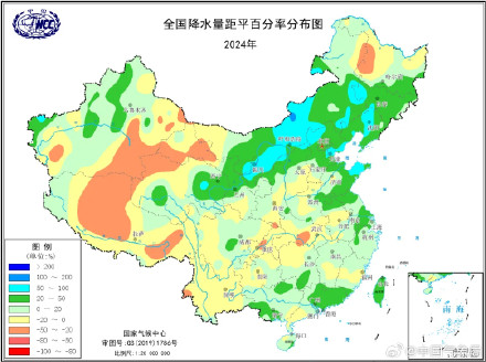 2024年,全国平均高温(日最高气温≥35.0℃)日数达15.6天,较常年偏多6.6天(图4),为1961年以来第二多,仅次于2022年。2024年,全国平均降水量697.7毫米,较常年偏多9.0%,为1961年以来历史第三多,仅次于1998年的713.1毫米和2016年的711.0毫米(图5、图6)。