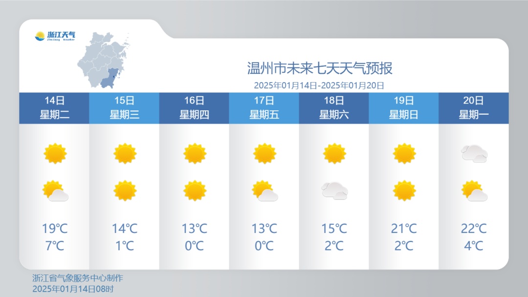 划重点!温暖局面要被打破,今天(14日)傍晚至明天受冷空气影响,我省有较明显降温和大风过程;今天后半夜至明天浙江沿海海面有9~10级偏北大风;16-17日早晨最低气温大部地区-1~-4℃,山区-4~-7℃,最厚衣服备上!