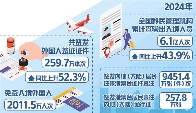 2024年6.1亿人次出入境,同比上升43.9%——