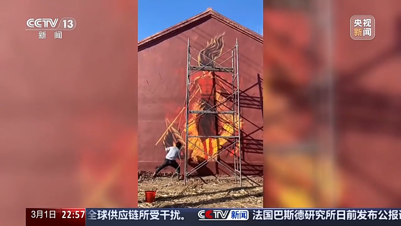 创作者沈靖宇:其实刚开始就是兴趣爱好。现在美丽乡村文化建设,我想着可不可以在墙上画点画,画些让大家喜欢的东西。
