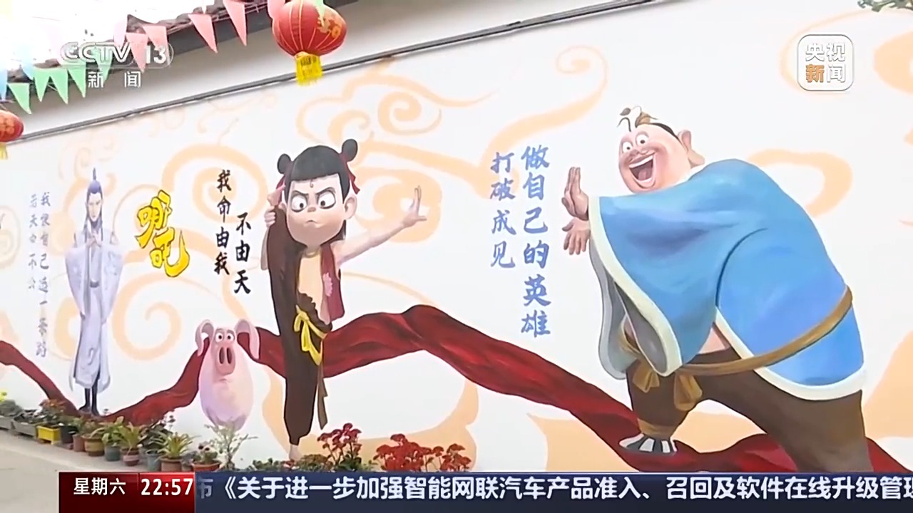 除了淄博,现在深圳、广州、长沙、南昌等地纷纷出现了哪吒主题的涂鸦墙,位置从城市街头蔓延到乡村,为他们带去了关注与周边收益。
