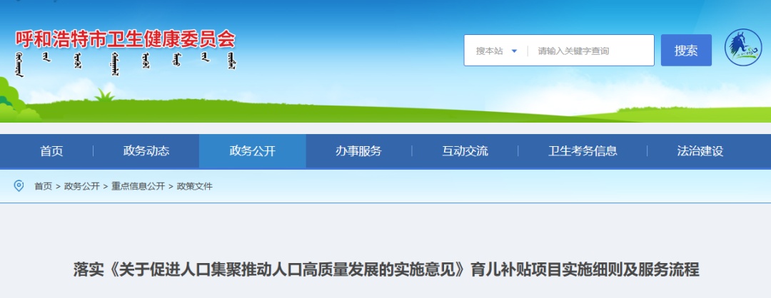 3月13日,据呼和浩特市卫健委网站,落实《关于促进人口集聚推动人口高质量发展的实施意见》育儿补贴项目实施细则及服务流程发布。