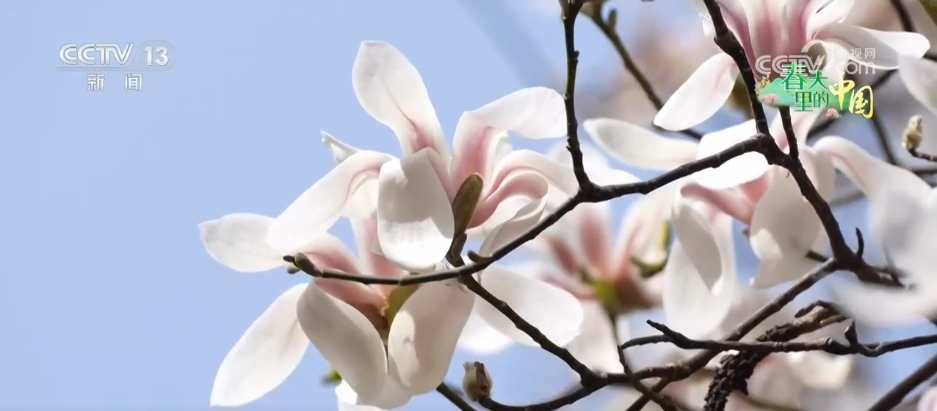 首先,跟随镜头来到空中视角——碧绿的垂柳、清澈的泉水,还有格外抢眼的、洁白的春花。它究竟是谁呢?接下来,把视线拉回到地面。原来是公园里的望春玉兰已经挂满了枝头,为市民游客们带来春天的气息。望春玉兰又叫望春花、迎春树,作为济南春天最早绽放的木兰属植物,被很多市民游客当做赏花季开始的信号。在色彩上,望春玉兰既非纯白的白玉兰,又不像鲜艳的紫玉兰,而是呈现出一种由紫到白的渐变色,这种色彩仿佛从花的基部逐渐渗透出来,显得淡雅别致。每当春风拂过,这里便会有暗香浮动,让春天的气息既能看得见,又能闻得着。