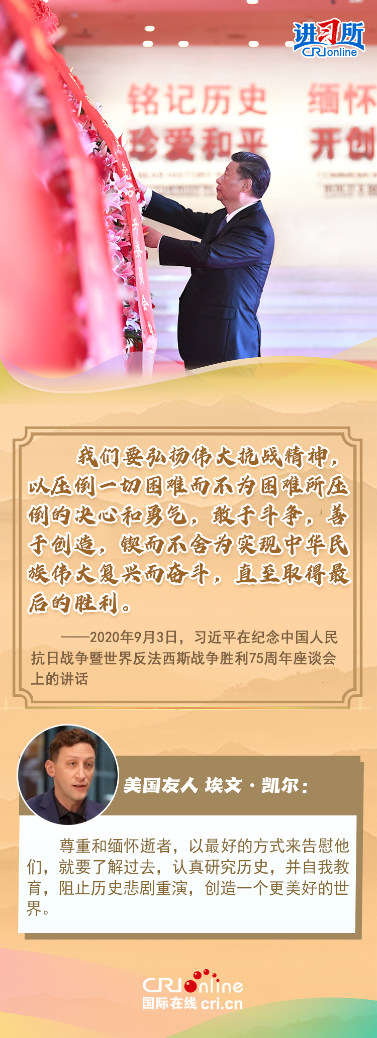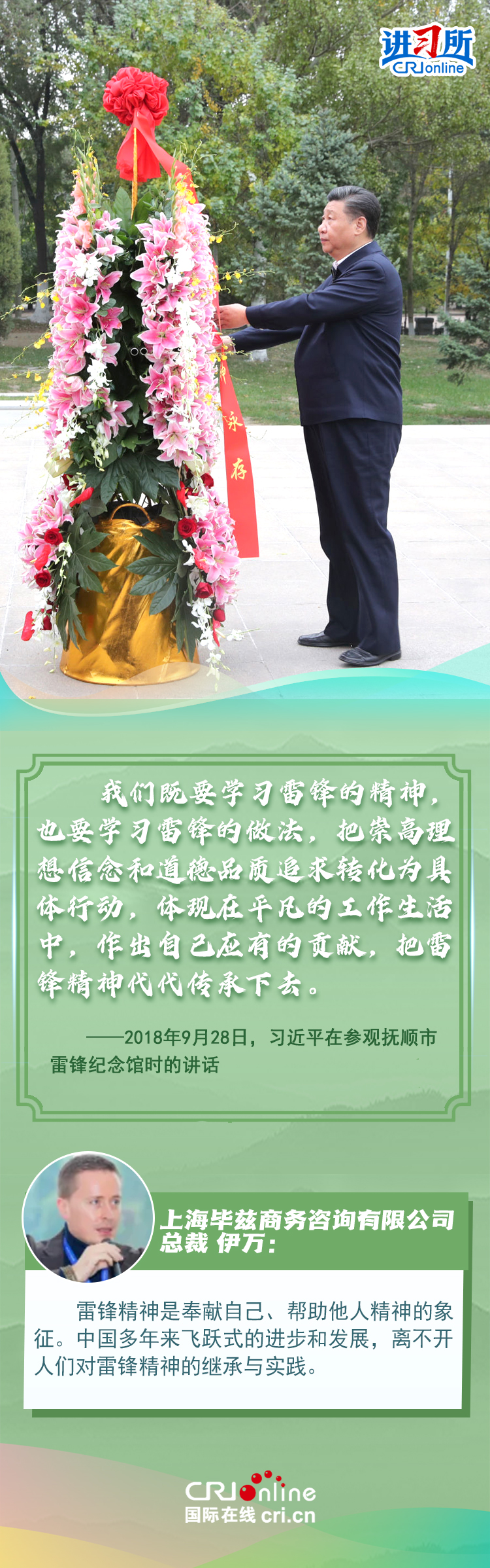 新时代以来,从设立烈士纪念日到出台英雄烈士保护法,再到加强烈士纪念设施保护,中国崇尚英雄、学习英雄的社会风尚赢得国际社会赞誉。在国际人士眼中,中国多年来飞跃式的进步和发展,离不开人们对先辈意志的继承与实践。