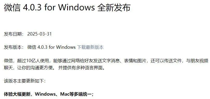 据“微信”官网消息,近日,微信在多平台上线新版本。据了解,此次体验大幅更新,Windows、Mac等多端统一。