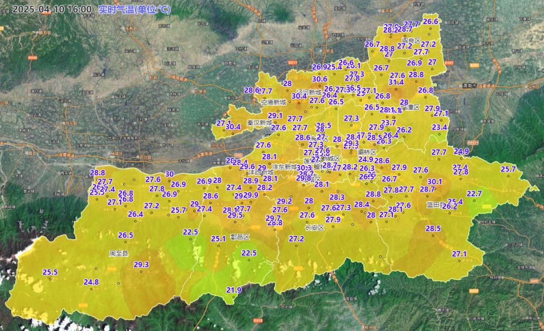 4月10日16时西安市气温实况色斑图