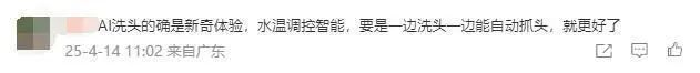对此,有网友表示,AI洗头的确是新奇体验,水温调控智能,但“对症下痒”的能力有限,技术炫酷,适合头发的日常维护。