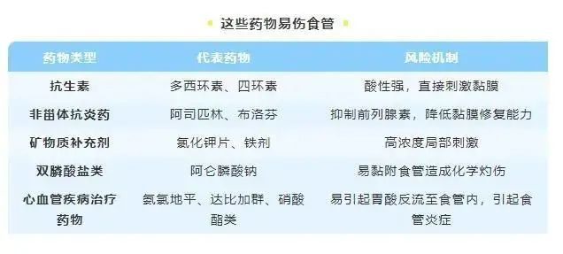 多种药物同时吞服:药片堆积在食管,延长接触时间。