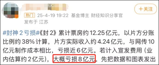4月19日,多位网友发文称,春节档上映的影片《封神第二部:战火西岐》亏损近8亿元,引发热议。