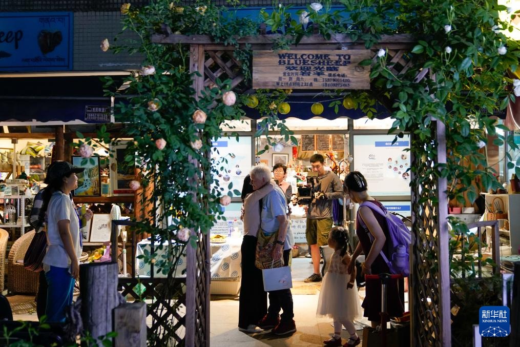 4月19日,瑞秋(右)在“岩羊”杂货店内与店员杨哥交流。