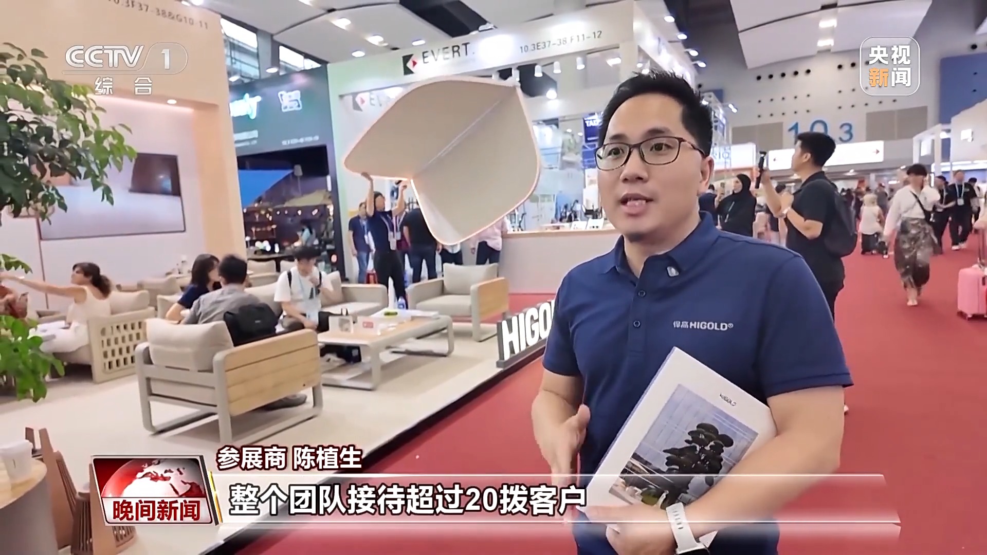 在广交会现场,全球客商并没有感受到中国企业因关税冲击带来信心减弱。传统制造企业选择“品牌出海”战略,从被动接单到主动输出品牌和标准,以创新设计与技术突破为亮点,实现传统产业向高端化、智能化的转变,从卖产品到卖品牌的升级。户外家居馆的展位上,参展商正在展示一款不久前刚刚斩获国际大奖的遮阳伞。