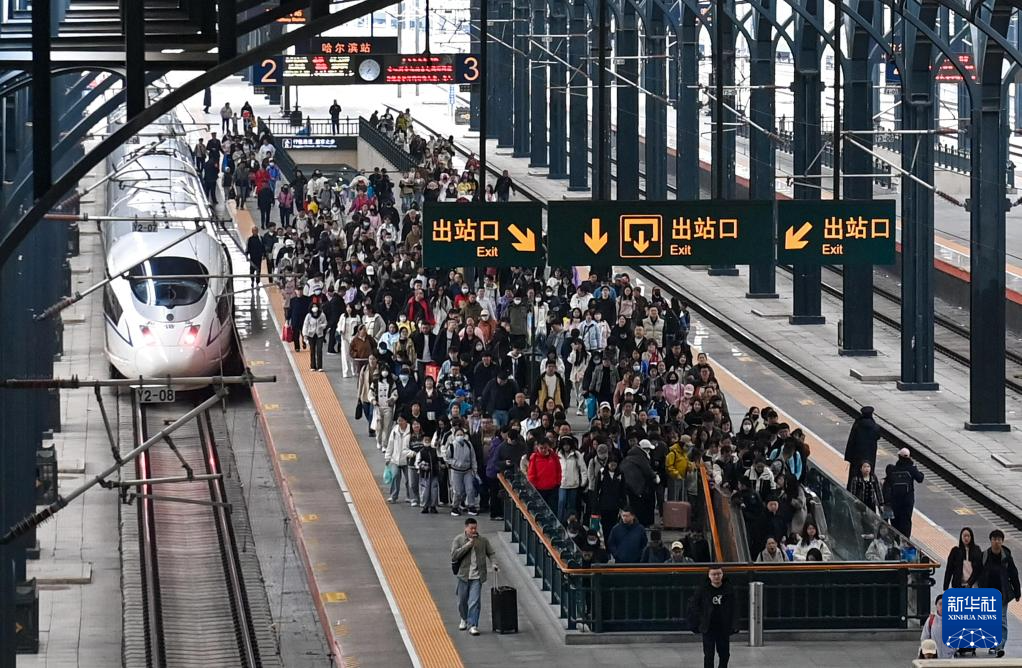 5月1日,旅客从哈尔滨火车站乘车出行。