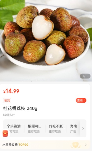 在某外卖平台上,一斤荔枝的价格算下来最高的价格是53元左右。