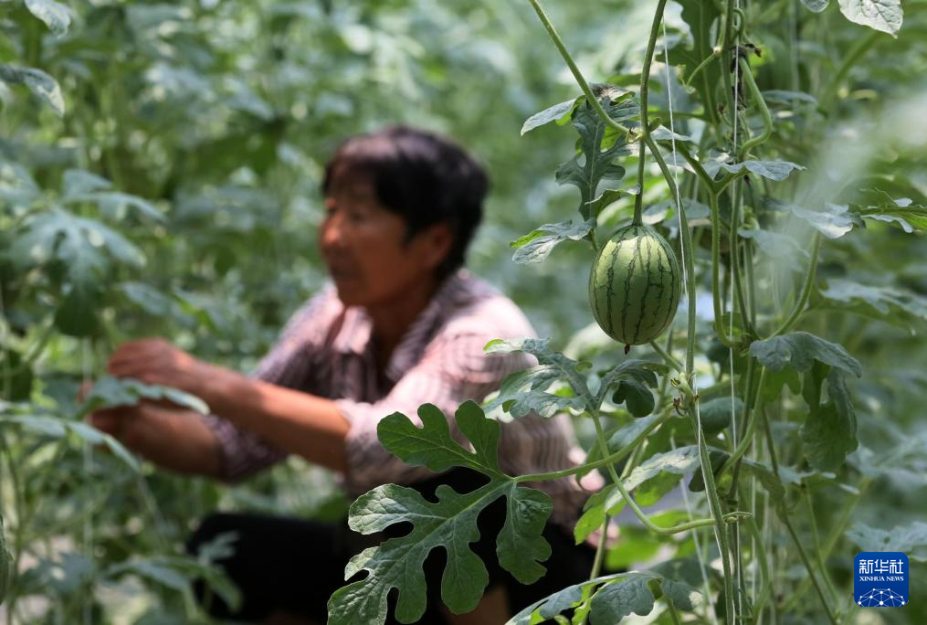5月20日,在四川省乐山市水口镇,种植户在大棚开展管护工作。 新华社发(李华时摄)