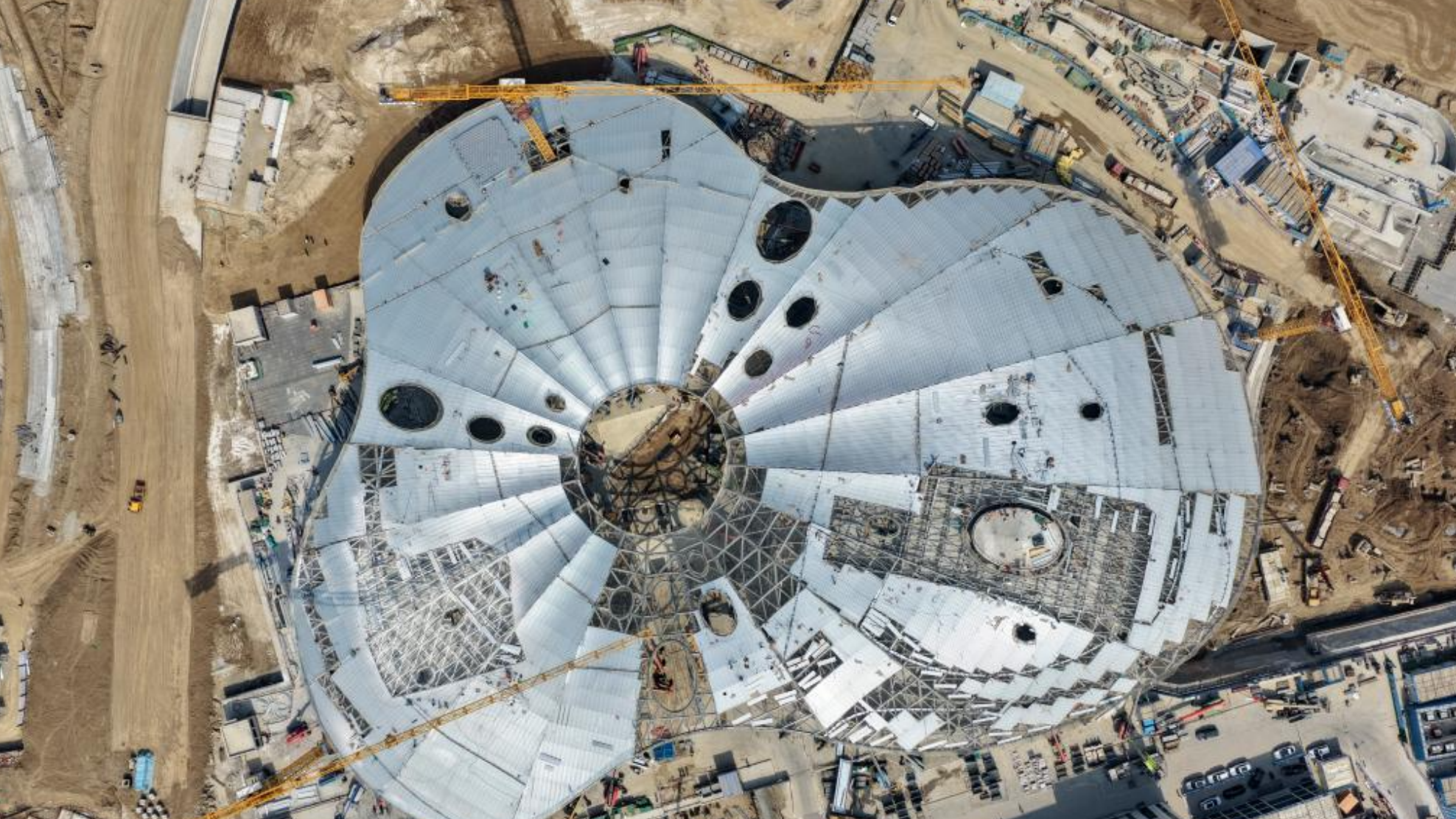 2025年1月7日,在天津科技馆拍摄的年度最大上弦月特写。(刘仲利 摄)