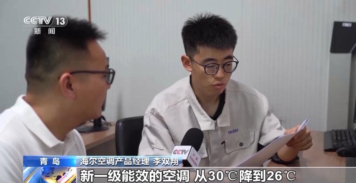 海尔空调产品经理李双翔:新一级能效的空调,从30℃降到26℃用时是44分钟,耗电量是1度。老空调用时是8个小时,耗电量是5度。