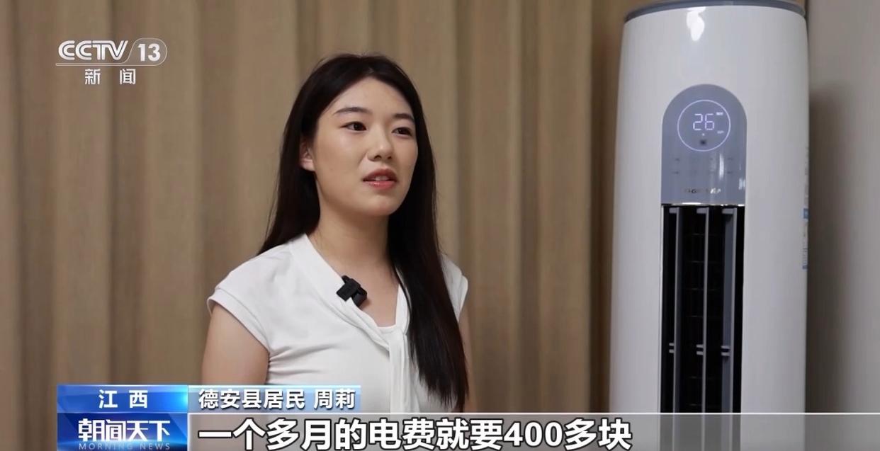 江西省德安县居民周莉:以前夏天开空调,一个多月的话,电费就要400多块,自从换了新空调之后,上个月电费才200多块钱,一下子节省了快一半的钱。