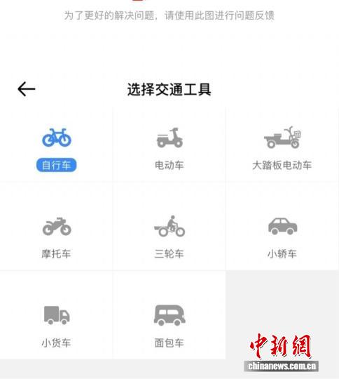 8月2日,一款送单APP上的交通工具选择内容。 (陈雨桐供图)