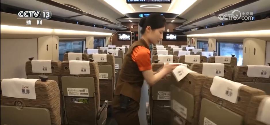 而高铁的“变脸”就发生在这个时段。当司机从原方向的车头驾驶室退出驾驶开关,车头前方白灯瞬间变红,也意味着这里要变成车尾;而原方向车尾的红灯保持不变。当司机启动即将折返方向驾驶室操作开关时,之前这里的红灯也瞬间变成了白色,高铁列车将按照车头白灯、车尾红灯的规则折返行驶。在高铁列车“变脸”的同时,车厢里的列车工作人员也在迅速给座椅转圈,让旅客的座椅方向和高铁的运行方向一致。