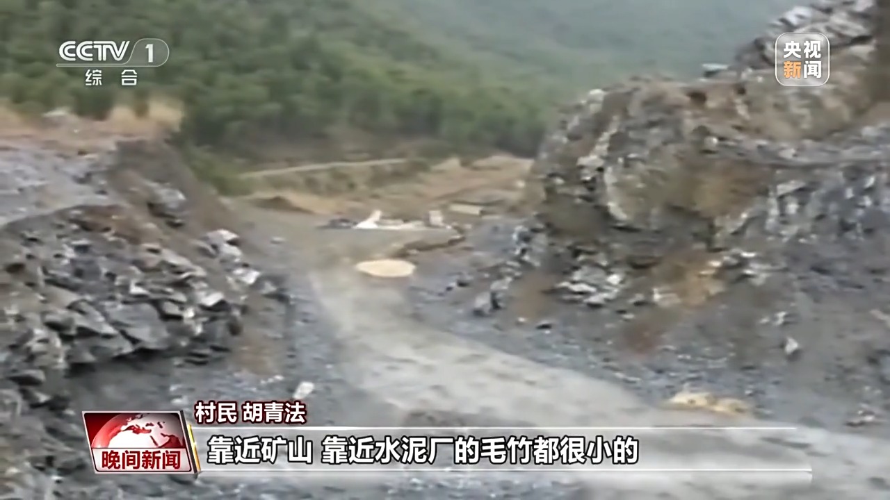村民胡青法:那片山都是灰蒙蒙的。那时候很明显,靠近矿山、靠近水泥厂的毛竹,都很小的。