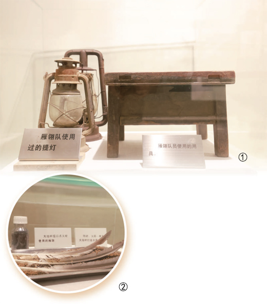 图①:雁翎队使用过的提灯和用具。