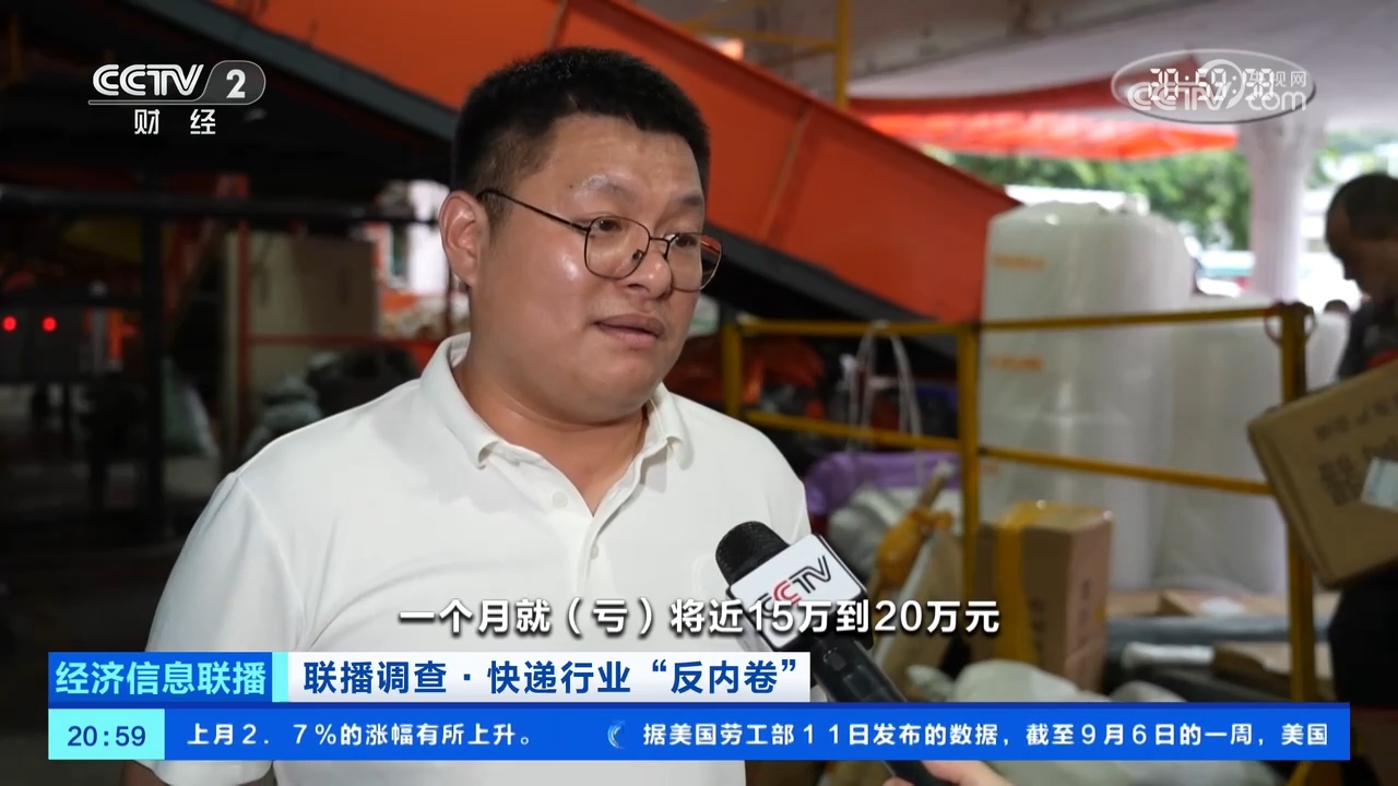 广东深圳某快递网点负责人罗轩昂:像我们网点今年的增速日均达到10%到15%,但是我们的营收下降了20%到30%,是由于整体价格下行导致的经营亏损。日均的亏损量在5000元至8000元左右,一个月就亏将近15万元到20万元。