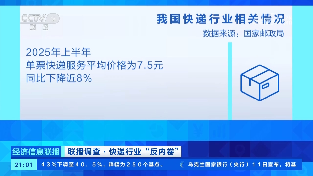 数据显示,今年上半年,我国快递量累计完成956.4亿件,同比增幅达19.3%;但单票快递服务平均价格却同比下降近8%,降至7.5元每单,部分地区甚至出现“8角钱就能发全国”的极端低价。这样的“内卷式”竞争愈演愈烈,给行业带来怎样的影响,来看记者在深圳的走访。