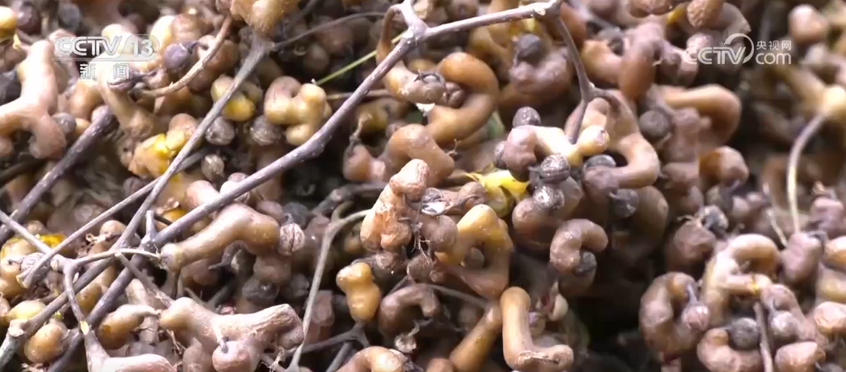 在当地一家收购合作社,一辆辆满载拐枣的小货车正在排队,过磅、卸货、结算,忙碌而有序。收购来的拐枣会直接送往车间,工人们要进行分拣、清洗,经过包装后,才能发往各地。