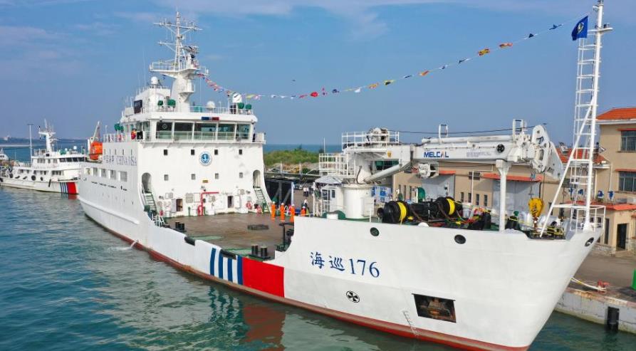 11月13日在海口拍摄的“海巡176”轮列编仪式现场。