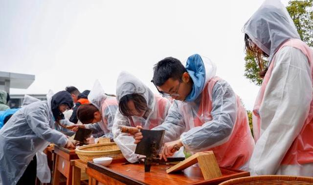 11月17日,大学生寻药比赛在浙江金华磐安举行,来自国内25所高校的46支队伍及3支国际队伍比拼炮制技艺。图为参赛选手炒制白术。中新社记者肖健 摄