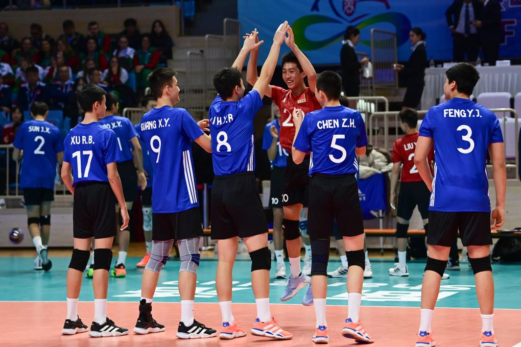 12月5日,2025年U15世界中学生排球锦标赛在陕西商洛开赛。在揭幕赛中,中国男子1队2:0战胜智利队。图为中国队员在赛前入场时互动。新华社记者邹竞一 摄