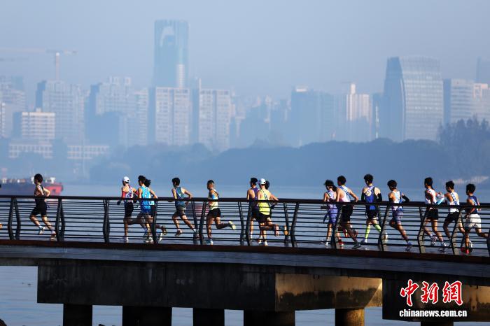 12月7日,运动员奔跑在上海黄浦江畔。当日,2025高校百英里接力赛总决赛在上海举行。本次比赛吸引了全国7大赛区及城市分站赛脱颖而出的顶尖高校赛队及特邀、外卡赛队共计100支队伍、近1300名青年运动员参赛。总决赛延续传统长距离团体接力赛制,总距离达到160公里。中新社记者汤彦俊 摄