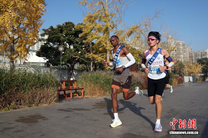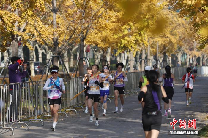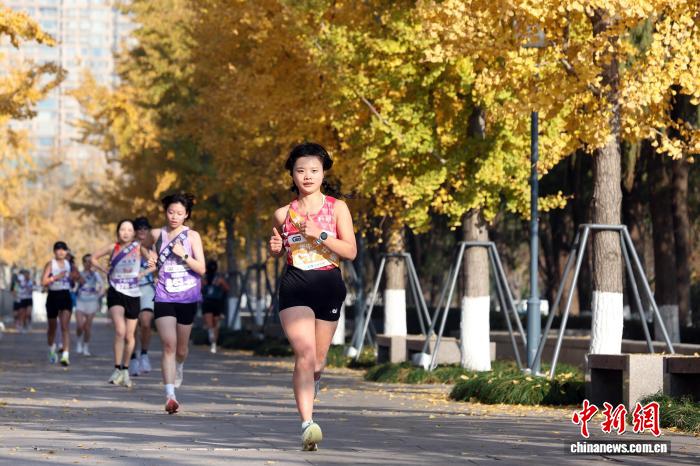 12月7日,运动员奔跑在徐汇滨江银杏大道上。当日,2025高校百英里接力赛总决赛在上海举行。本次比赛吸引了全国7大赛区及城市分站赛脱颖而出的顶尖高校赛队及特邀、外卡赛队共计100支队伍、近1300名青年运动员参赛。总决赛延续传统长距离团体接力赛制,总距离达到160公里。中新社记者汤彦俊 摄