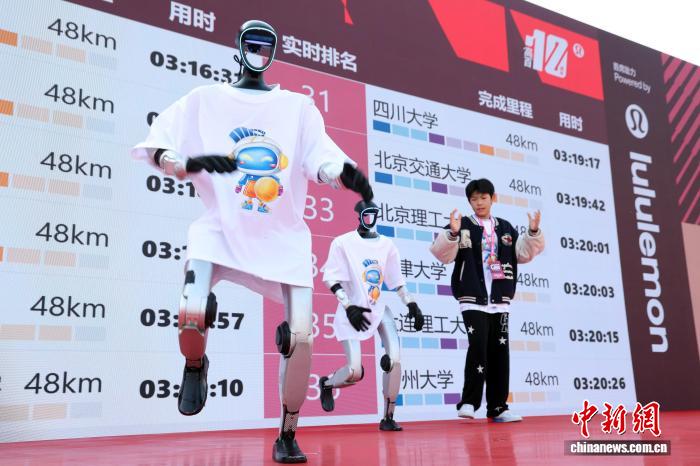 12月7日,机器人在场边为运动员加油助阵。当日,2025高校百英里接力赛总决赛在上海举行。本次比赛吸引了全国7大赛区及城市分站赛脱颖而出的顶尖高校赛队及特邀、外卡赛队共计100支队伍、近1300名青年运动员参赛。总决赛延续传统长距离团体接力赛制,总距离达到160公里。中新社记者汤彦俊 摄