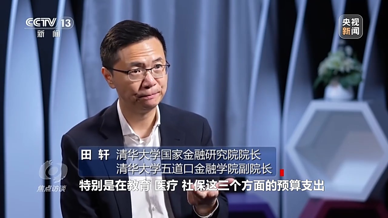 清华大学国家金融研究院院长、清华大学五道口金融学院副院长田轩:今年前三季度,国家对于民生的支出也有大幅度提升,特别是在教育、医疗、社保这三个方面的预算支出超过了一般公共预算支出的增速,体现了惠民生。