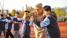 近日,安徽省合肥市庐阳区人民武装部开展“迷彩国防校园行”活动,走进庐阳区淮河路第三小学,普及国防知识,锤炼学生顽强的意志品质,厚植家国情怀。徐伟 摄