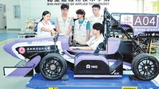 深职大比亚迪应用技术学院教师张亚琛(左一)指导魅影方程式车队改进方程式赛车。学校供图