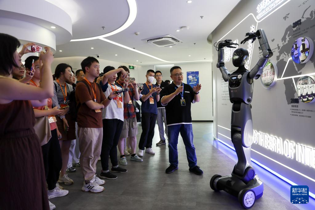 2025年6月17日,在北京人形机器人创新中心有限公司,人形机器人“天工2.0”向参观者致意。新华社记者 郑焕松 摄