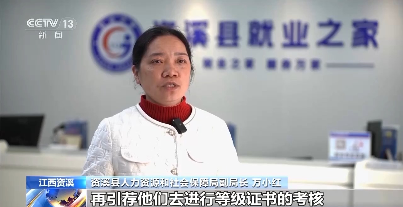 资溪县人力资源和社会保障局副局长万小红:培训合格以后再引荐他们进行等级证书的考核,加上我们的就业推荐信,他可以到我们开的任何资溪面包品牌店里面去就业,可以免试上岗。