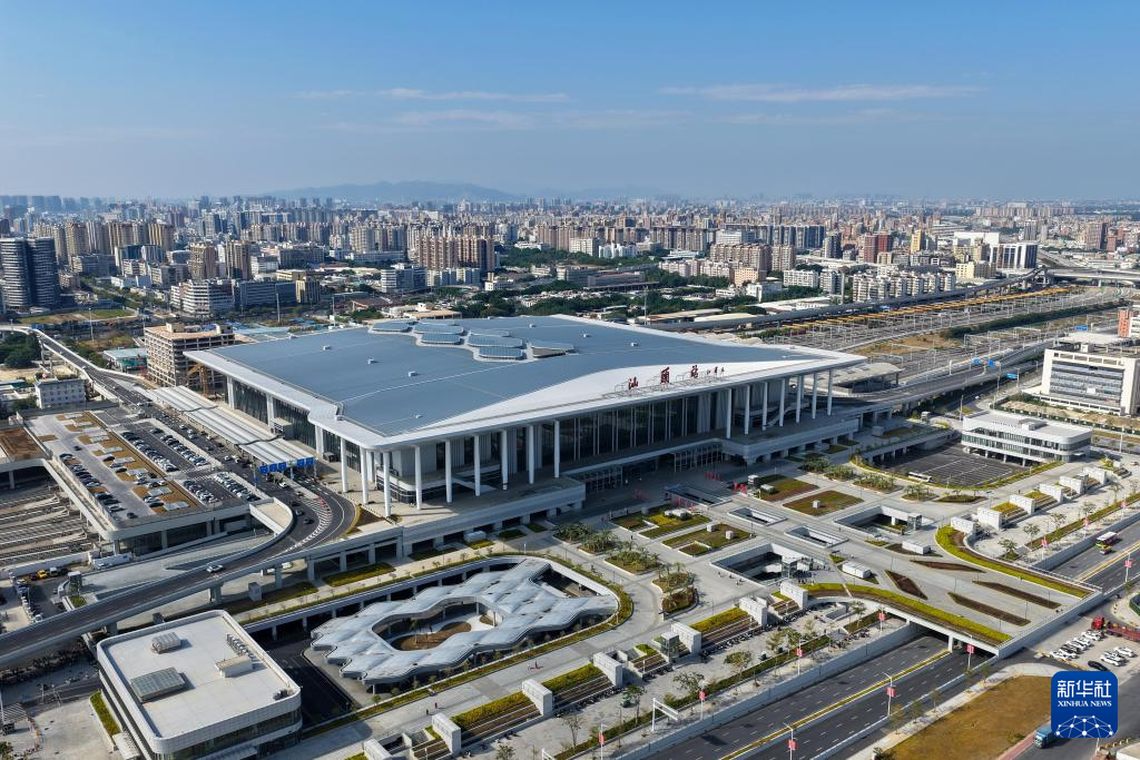 这是12月22日拍摄的高铁汕头站(无人机照片)。 新华社发(姚军 摄)