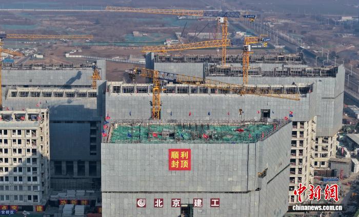 12月23日,由北京建工承建的北京交通大学雄安校区建设项目(一期)B组团学生宿舍及留学生公寓建设项目实现全面封顶,为后续装饰装修、机电安装等施工环节的全面推进奠定基础。该项目为雄安新区首批高校疏解重点工程,位于起步区第五组团北京交通大学雄安校区校园的东南角,总建筑面积达11.6万平方米,主要建设内容涵盖5栋学生宿舍楼、1栋留学生公寓以及1栋配套配电室,建成后将为校区师生提供优质的住宿与保障服务。图为航拍北京交通大学雄安校区建设一期B组团项目建设现场。(无人机照片)中新社记者韩冰 摄