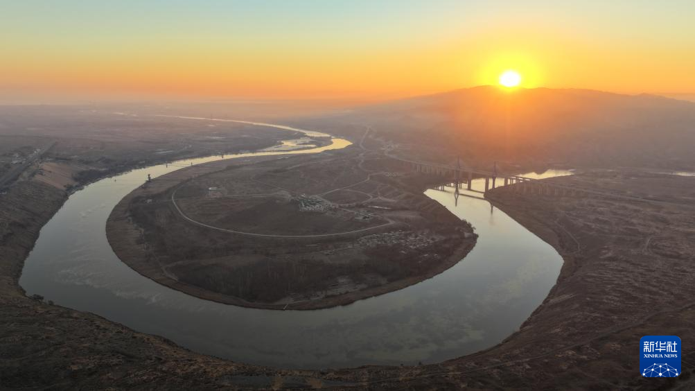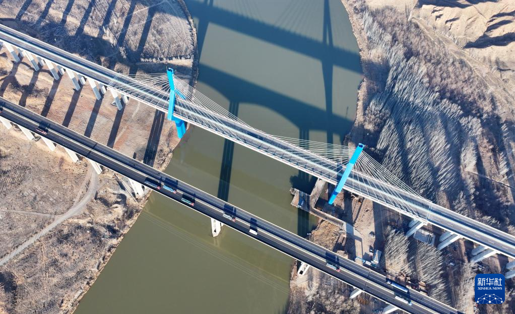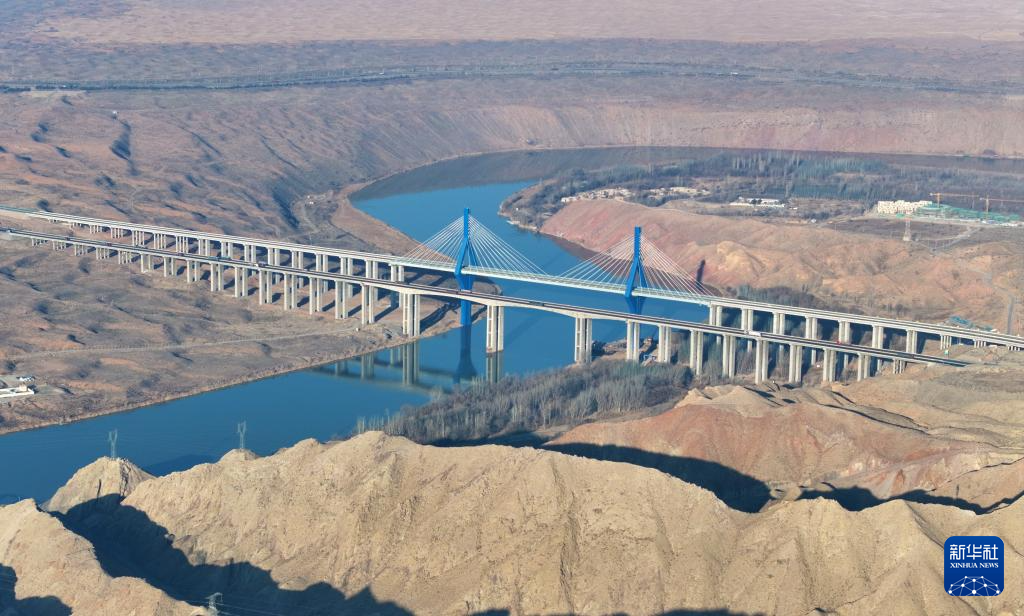 位于宁夏中卫市沙坡头区的黑山峡黄河特大桥(12月27日摄,无人机照片)。新华社发(袁宏彦摄)