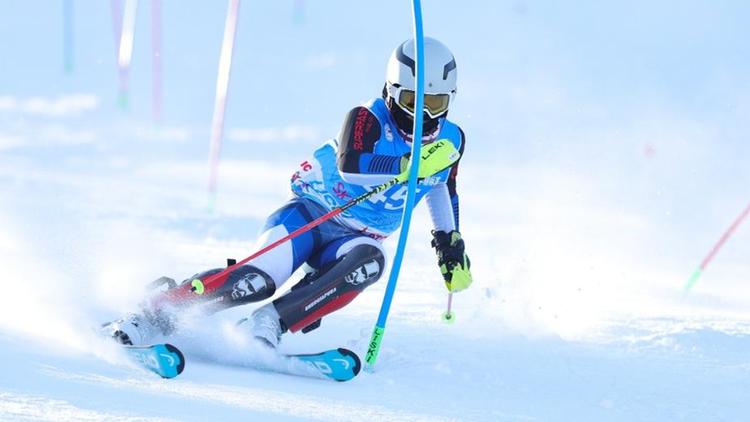一名青少年运动员在全国高山滑雪青少年锦标赛中。图片来自华体冰雪公司