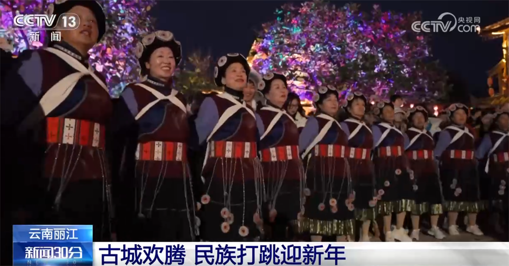 云南丽江:古城欢腾 民族打跳迎新年