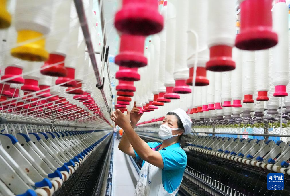 12月31日,在湖南省衡阳市白沙洲工业园,衡阳天锦纺织有限公司员工在生产线上作业。