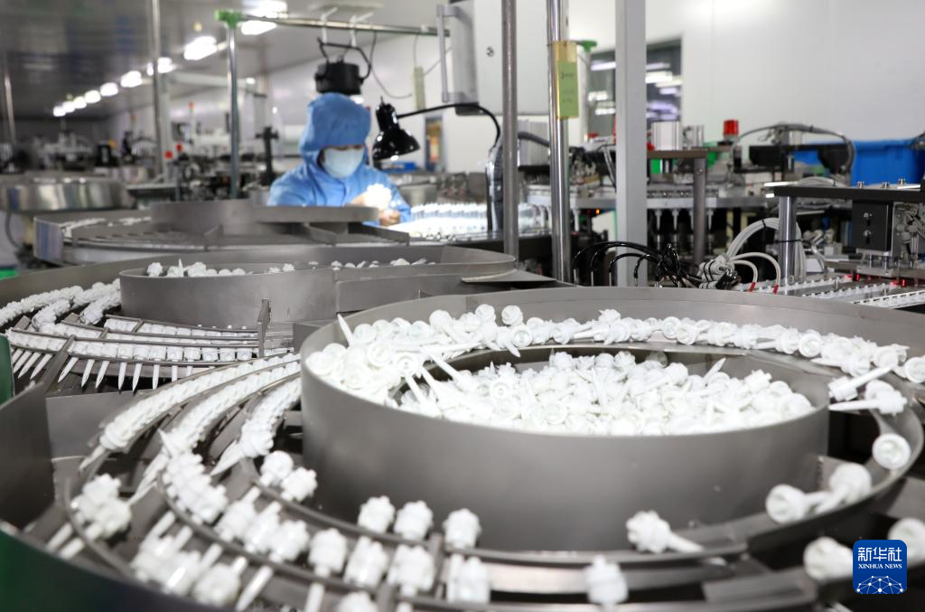 12月31日,山东省滨州市博兴县庞家镇一家医疗器械公司的工人在进行生产作业。