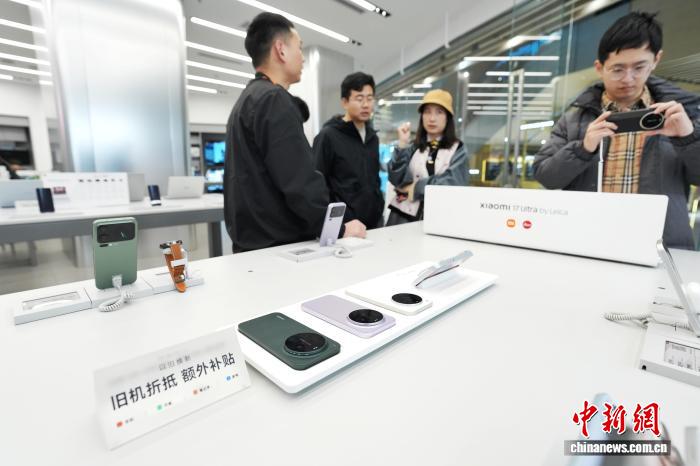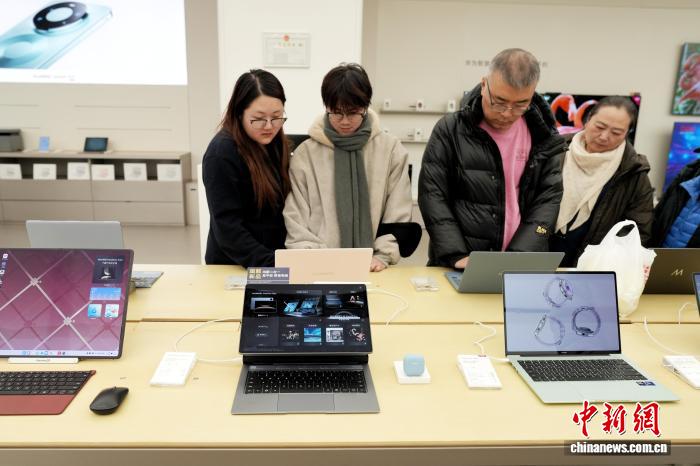 1月1日,消费者在北京一家门店选购电子产品。当日,2026年大规模设备更新和消费品以旧换新政策正式实施。中新社记者 张祥毅摄