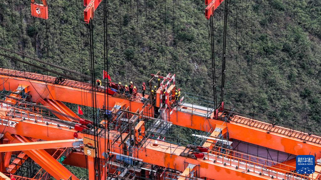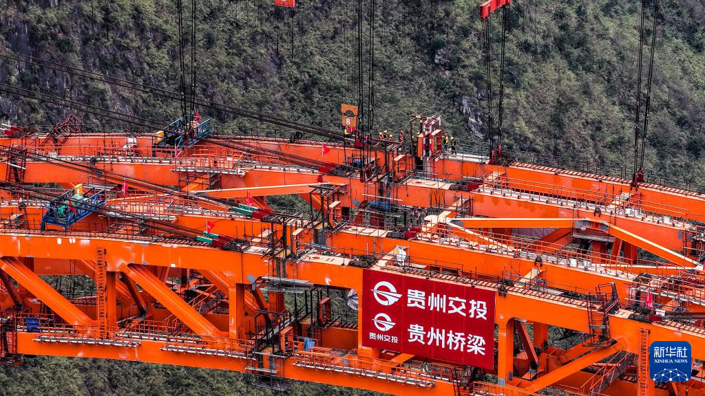 1月5日,随着最后一节钢拱精准吊装到位,贵州交投集团承建的安顺至盘州高速公路古牛河特大桥顺利合龙,为后续工程建设推进奠定了坚实基础。古牛河特大桥是安盘高速控制性工程,全长881.8米,主桥横跨古牛河,主桥桥面到谷底高度约400米。