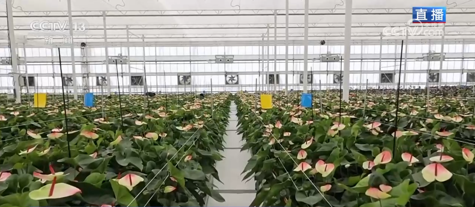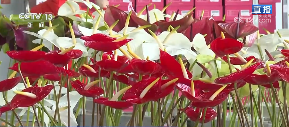 记者来到陕西省规模最大的鲜切花种植基地,这里是他们的包装车间。大家可以看到,我身后的8条生产线正在高速运转,工人们熟练地对鲜花进行分拣、包装。每一枝年宵花从采摘到成品仅需一小时,确保以更加新鲜的状态发往全国各地。车间的另一侧可以看到电商直播区也格外忙碌,主播们正通过线上平台向消费者推荐今年的年宵花系列礼盒,这种“线上线下融合保供”的模式,也是提升了工厂快速响应市场需求的能力。